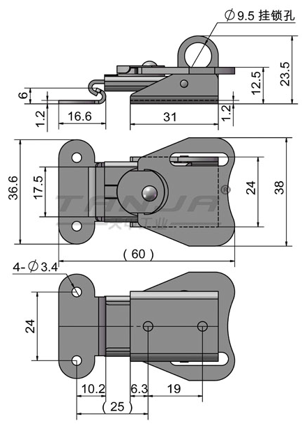 通過偏心結(jié)構(gòu)帶動(dòng)鎖舌鎖緊,并形成自鎖,防止回彈