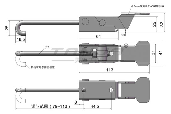 掛桿可以調(diào)節(jié)從而改變鎖緊力