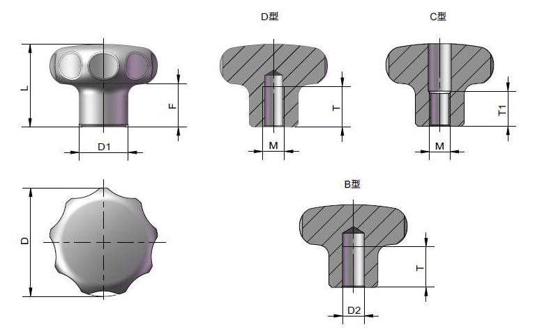 D型:帶螺紋盲孔