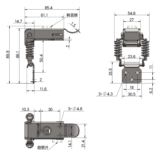 五金直角搭扣與我們平常使用的工具箱搭扣的材質(zhì)是一樣的,可以采用鐵材質(zhì),也可以不銹鋼材質(zhì),上面圖中這款采用的是鐵材質(zhì)的,表面采用鍍鋅處理,在生產(chǎn)工藝方面都是采用沖壓工藝,五金直角搭扣如果使用在室內(nèi)可以采用鐵材質(zhì)的,因?yàn)槭覂?nèi)干燥環(huán)境下鐵材質(zhì)表面鍍鋅可以起到很好的防腐、防銹作用。像這種彈性減震搭扣就是采用鐵材質(zhì)的。