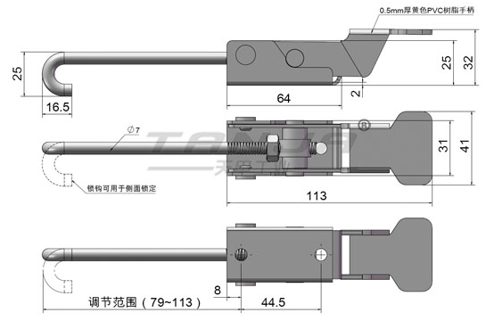 掛桿可以調(diào)節(jié)從而改變鎖緊力