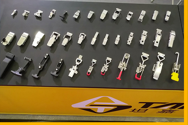 此次坦嘉攜帶多款自主研發(fā)的專利產(chǎn)品:不銹鋼搭扣、鉸鏈、門配、旋鈕、磁力夾具、把手及各種操作件等產(chǎn)品盛裝出席。