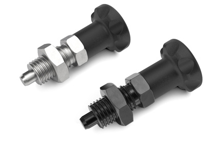 S24不帶定止位的設(shè)計(jì)使其在銷頭處于末端位置時(shí)(彈簧“受阻”),仍能吸收軸向力。設(shè)計(jì)用于無需標(biāo)準(zhǔn)捏手操作分度銷的場合。