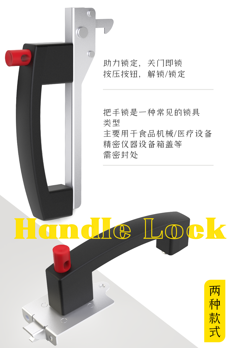 把手鎖是一種常見的鎖具類型,主要用于食品機(jī)械/醫(yī)療設(shè)備/精密儀器設(shè)備箱蓋等需密封處