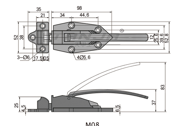 鎖舌為滾輪結(jié)構(gòu),單觸操作即可開(kāi)閉