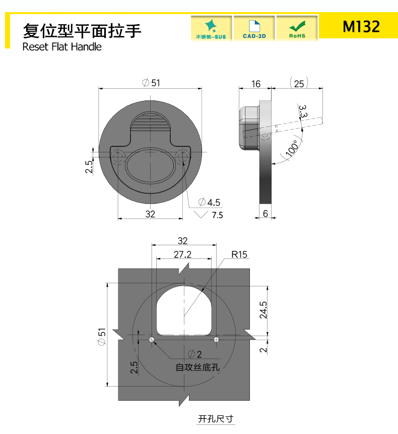 帶回收復(fù)位彈簧,不使用時(shí)保持平面收納狀態(tài)
