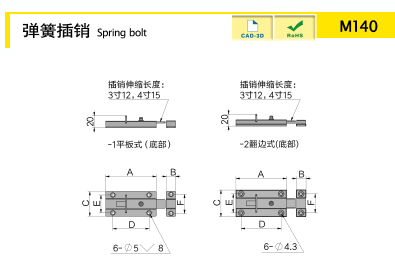 | 型號 | 材質(zhì) | 重量(g) | 長度(mm) ![]() | 顏色 | 表面處理 ![]() | A | B | C | D | E | F | 功能 | 3D圖紙 | 選購 | |||
