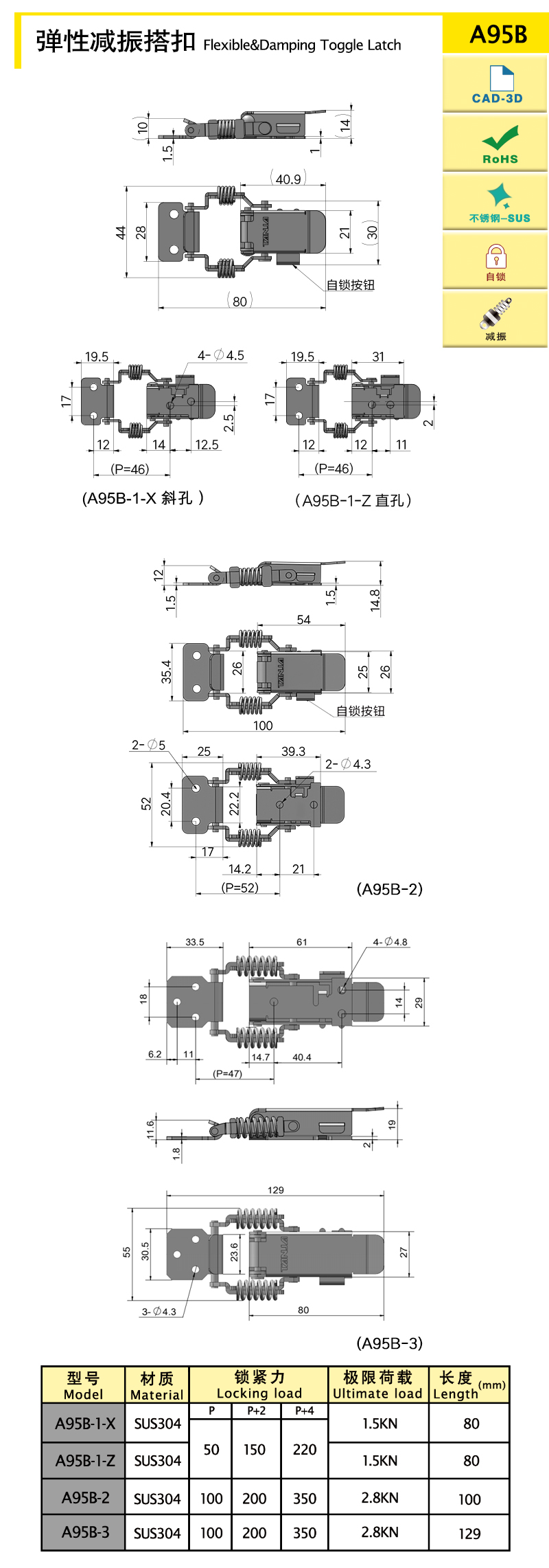 搭扣獨(dú)特的自鎖機(jī)構(gòu)設(shè)計(jì),防止搭扣在使用過(guò)程中彈開(kāi),使用方便安全