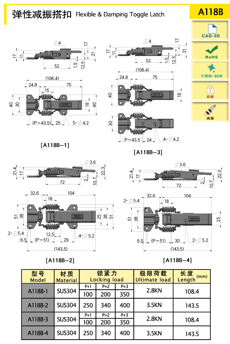 自鎖裝置可實現自鎖功能,具有可靠的安全性,搭扣不會因振動松脫
