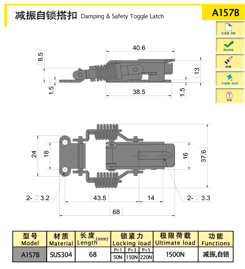 自鎖裝置可實(shí)現(xiàn)自鎖功能,具有可靠的安全性,搭扣不會(huì)因振動(dòng)松脫