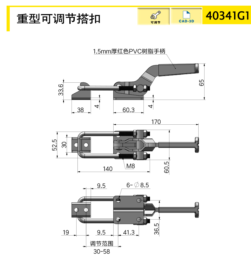 螺桿可調(diào)節(jié)從而改變安裝距和鎖緊力;