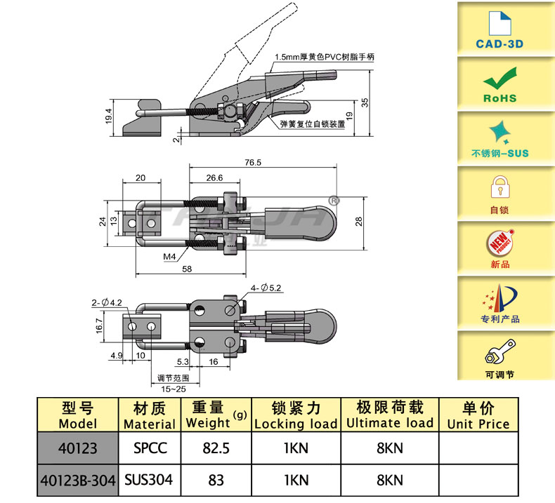 U型螺桿可調(diào)節(jié)安裝距離和緊固松緊度