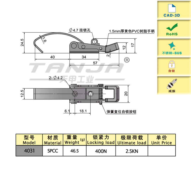 自身的彈性鋼片使搭扣具有預(yù)壓減振功能