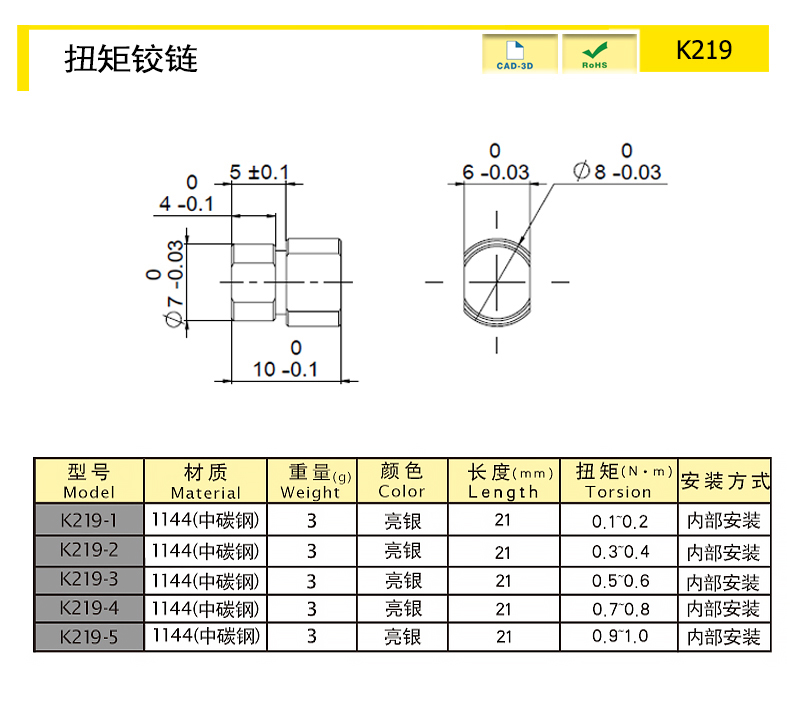 使用壽命:開合20000次扭矩衰減20%