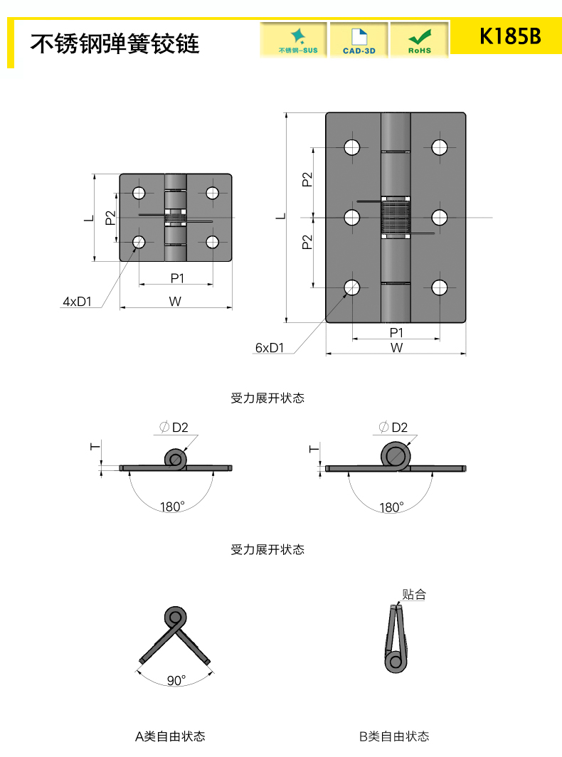 | K185B-4.0-B | SUS304 | 100 | 銀白 | 1 | 50 | 30 | 37.5 | 5.4 | 9.5 | 2 | 輕載 | 下載 |