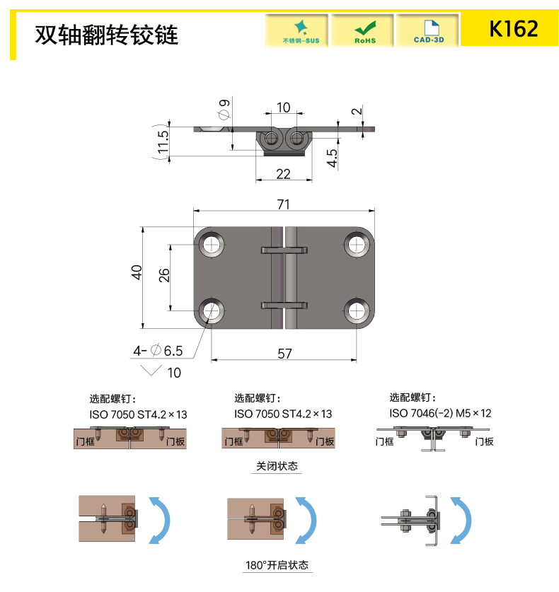 兩邊對稱,開合角度180°