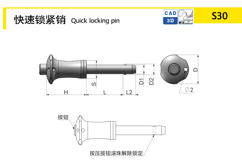 | 型號(hào) | 材質(zhì) ![]() | D1 ![]() | D ![]() | 長度L ![]() | H ![]() | L2 ![]() | D2 ![]() | S ![]() | 重量(g) | 3D圖紙 | 選購 | |||