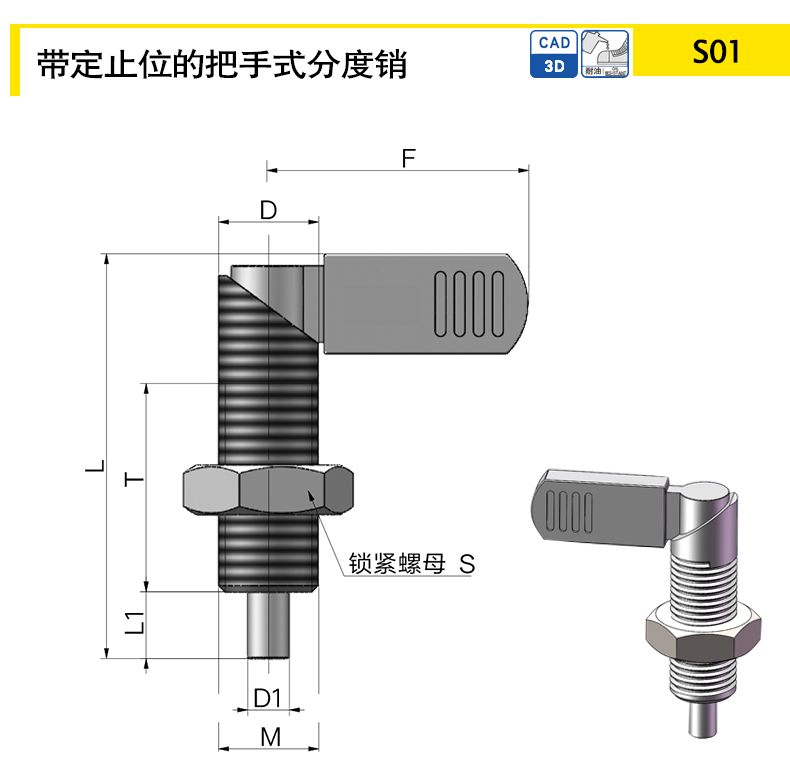 把手式分度銷適用于須將銷頭快速縮回的場合