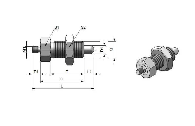 | 型號 | 材質(zhì) ![]() | D1 ![]() | L1 ![]() | M ![]() | T ![]() | 長度L ![]() | 高度H ![]() | S1 | S2 ![]() | T1 ![]() | M1 ![]() | 最大載荷(N) ![]() | 重量(g) | 3D圖紙 | 選購 | |||