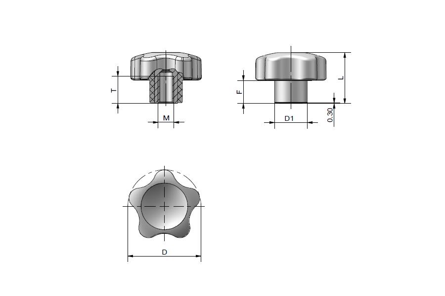 | 型號(hào) | 材質(zhì) | 直徑D | D1 ![]() | M ![]() | T ![]() | F ![]() | 特點(diǎn) | 重量(g) | 3D圖紙 | 選購 | |||
