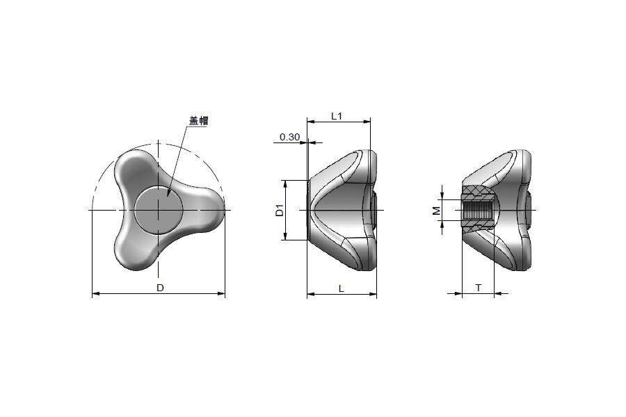 帶弧形三面區(qū)域的旋鈕,蓋帽可摘掉利用。外觀漂亮,易于手握緊固。
