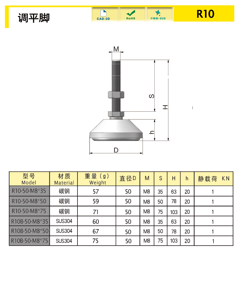 R10-50-M8-75 | 碳鋼 | 40 | M8 | 75 | 103 | 20 | 1 | 1 | 下載 |