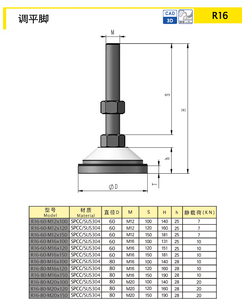| R16-60-M12-150 | 鋼/不銹鋼 | 60 | M12 | 150 | 25 | / | 209.01 | 7 | 下載 | ||||