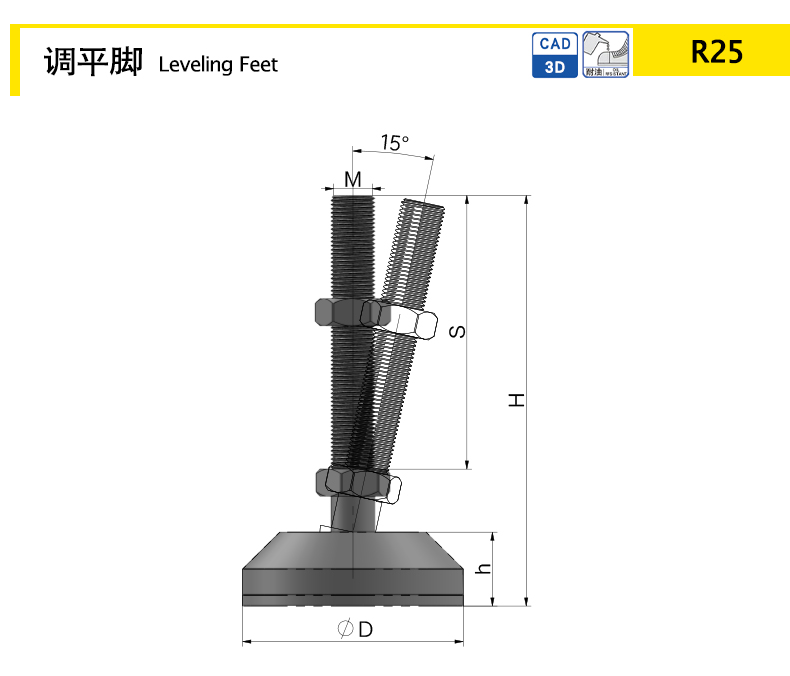 螺桿提供15度萬(wàn)向調(diào)整,解除角度公差,使機(jī)器設(shè)備平穩(wěn)度更佳