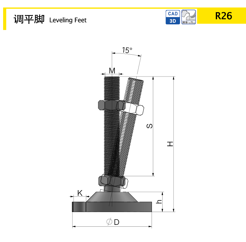 螺桿提供15度萬向調(diào)整,解除角度公差,使機(jī)器設(shè)備平穩(wěn)度更佳更多信息