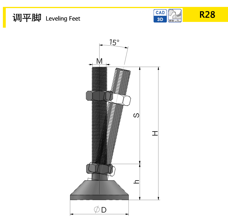 | 型號 | 材質(zhì) | 直徑D | M | S | H | h | 重量(g) | 靜載荷(KN) | 表面處理 | 3D圖紙 | 選購 | |||