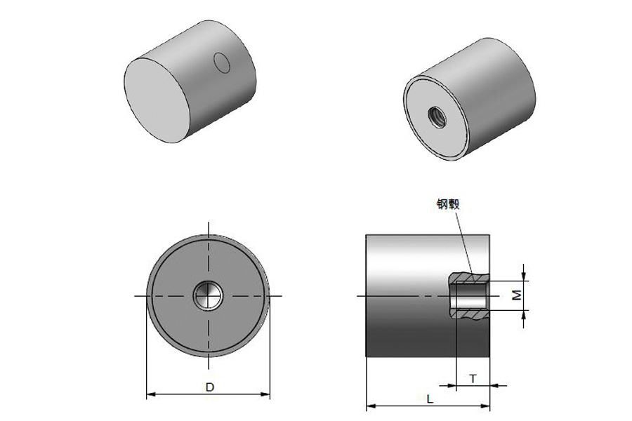 | 型號(hào) | 材質(zhì) ![]() | 重量(g) | 直徑D ![]() | 長(zhǎng)度L ![]() | T ![]() | M ![]() | 最佳壓縮量(mm) ![]() |