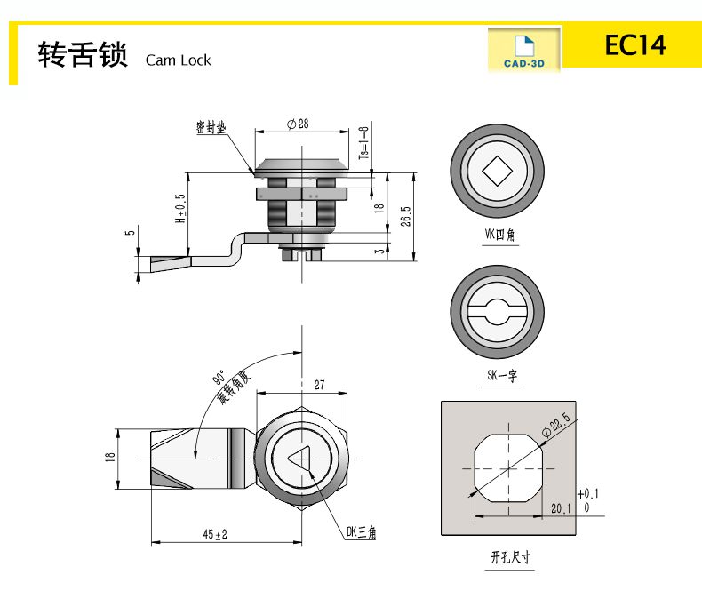 | EC14B-3DK | 圓柱鎖 | SUS304 | 28 | 可選 | 拋光 | 95.91 | 下載 | ||||