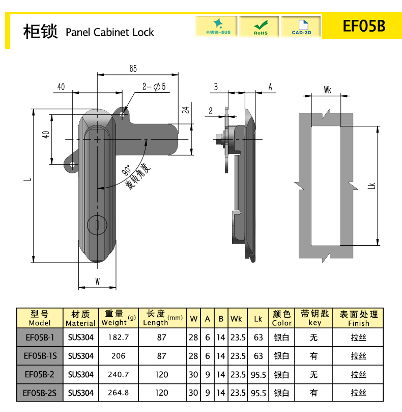 結(jié)構(gòu)功能:手柄向上打開,帶動(dòng)鎖片90°旋轉(zhuǎn)實(shí)現(xiàn)開啟。
