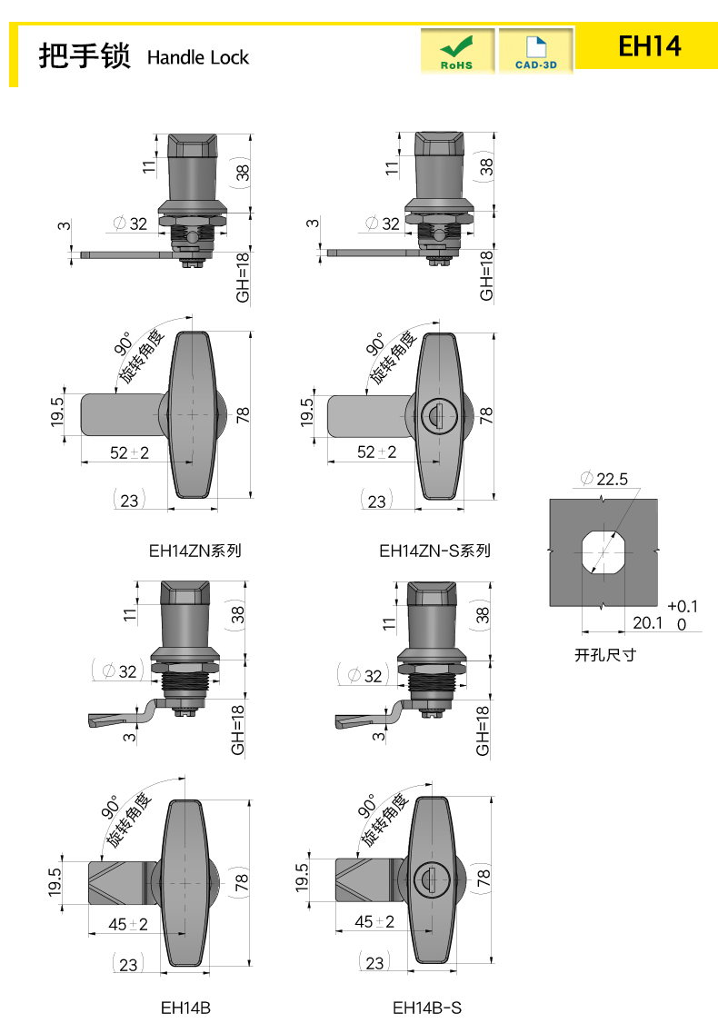 | EH14ZN-S-BK | 把手鎖 | 鋅合金 | 78 | 黑色 | 是 | 噴涂 | 186.5 | 下載 | ||||